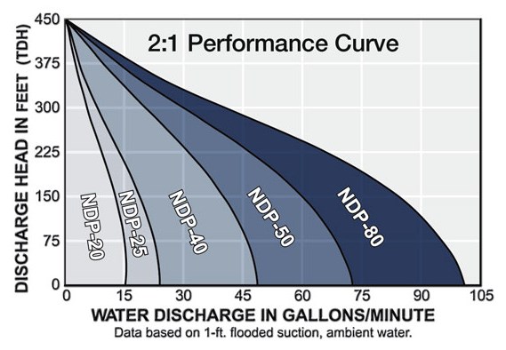 El caudal es aproximadamente la mitad de la salida de la bomba de tamaño equivalente, aunque se puede lograr una presión de descarga máxima de 200 PSI con solo la presión de entrada de aire de 100 PSI suministrada.